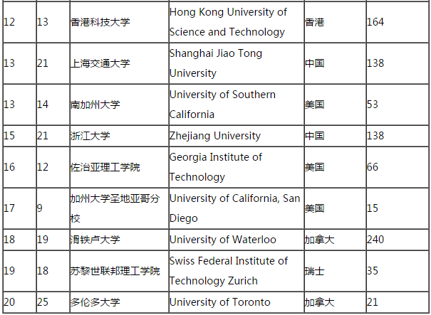 加拿大大學(xué)入圍3所,滑鐵盧大學(xué)位列第18名,多倫多大學(xué)與其相近位列20。