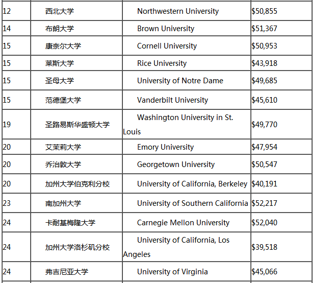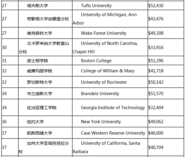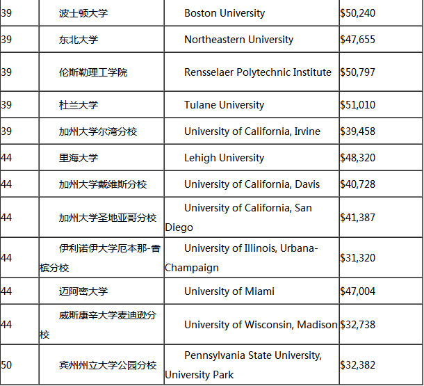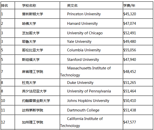 一、美國2018USNEWS大學(xué)排行榜TOP50學(xué)費(fèi)一覽表