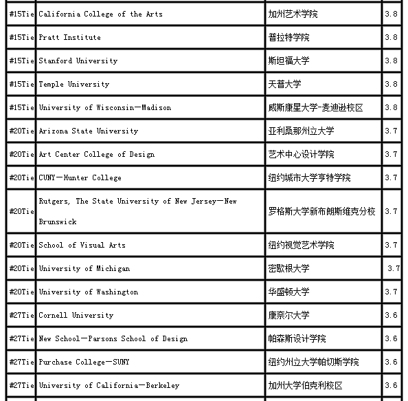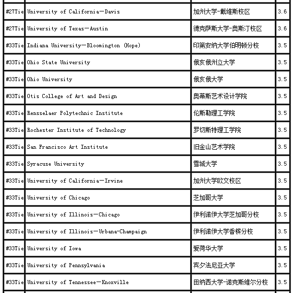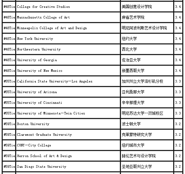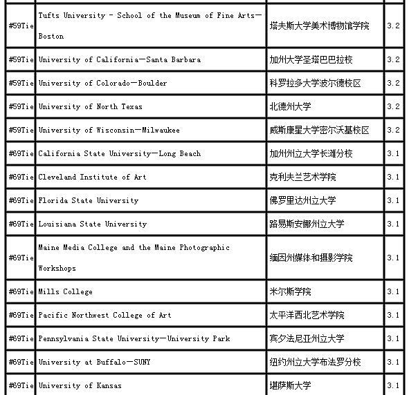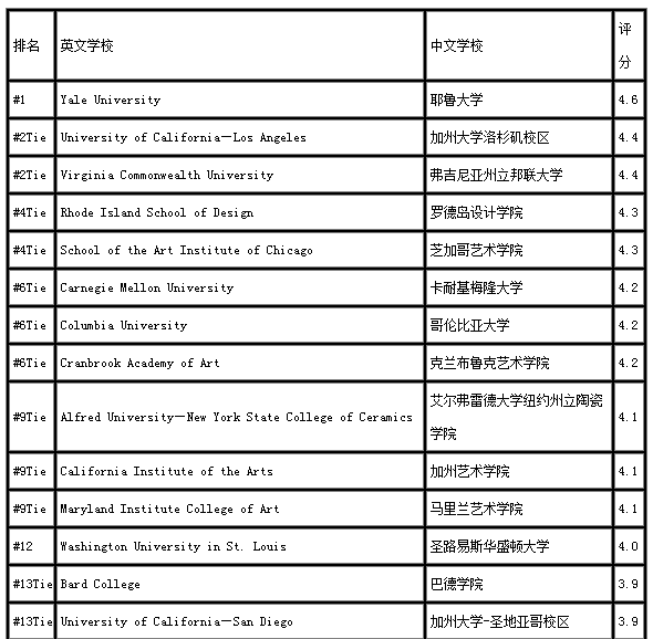 美國大學(xué)藝術(shù)學(xué)院排名前100