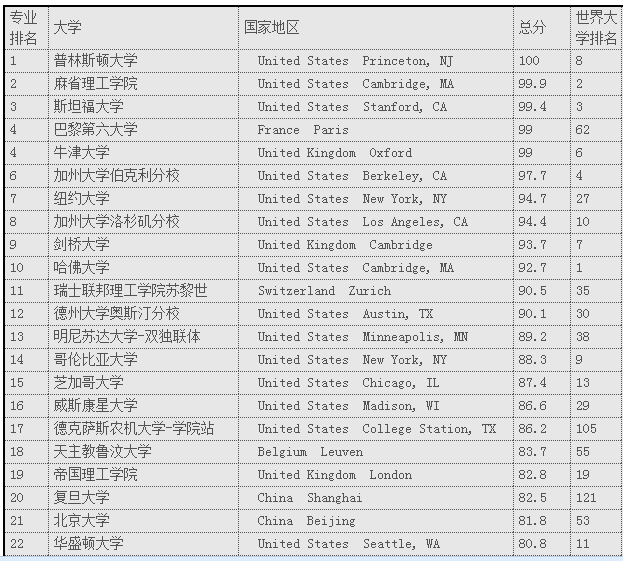 美國大學(xué)數(shù)學(xué)專業(yè)排名TOP100