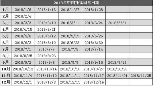 2018年托福考試時(shí)間匯總