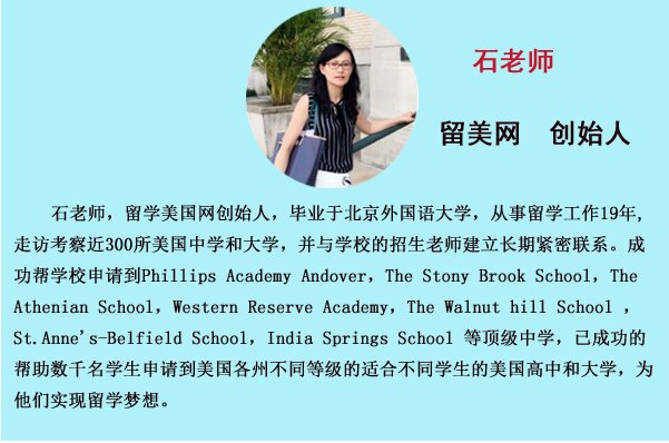 希望以上這些內(nèi)容可以給正在申請(qǐng)或打算申請(qǐng)轉(zhuǎn)學(xué)的同學(xué)和家長們提供一些幫助。我們留學(xué)美國網(wǎng)資深總監(jiān)石老師有多年美高申請(qǐng)經(jīng)驗(yàn),她已經(jīng)親自走訪了300多所美國學(xué)校,與許多學(xué)校的招生官結(jié)下了深厚的友情,她對(duì)申請(qǐng)美國學(xué)校的方方面面都有全面透徹的了解,如果您在幫助孩子申請(qǐng)轉(zhuǎn)學(xué)時(shí)還有哪些疑問,歡迎咨詢留學(xué)美國網(wǎng),石老師很愿意給您解答并提供專業(yè)的建議和幫助?!颈疚南盗裘谰W(wǎng)原創(chuàng),轉(zhuǎn)載請(qǐng)注明出處!】