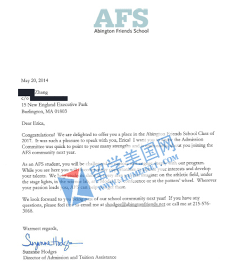 (留學(xué)網(wǎng)學(xué)生獲得的阿秉堂貴格會學(xué)校offer)