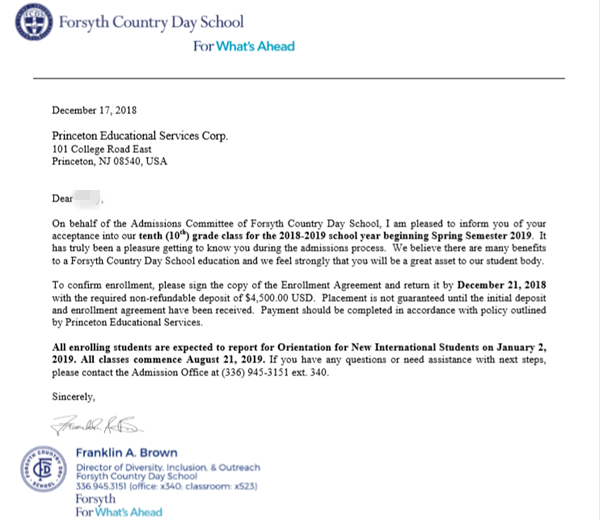 譚同學(xué)找到我們的時(shí)候是要申請(qǐng)春季的學(xué)校,時(shí)間和名額都是非常緊張的,而且標(biāo)化成績(jī)不是很好。雖然在進(jìn)行面試培訓(xùn)的時(shí)候,發(fā)現(xiàn)譚同學(xué)在回答問題上有一些問題,但是經(jīng)過文案老師的指導(dǎo),在面試過程中譚同學(xué)成功地表現(xiàn)出了她的長(zhǎng)處。但是在家長(zhǎng),學(xué)生以及留美網(wǎng)顧問和文案老師積極配合下,在很短的時(shí)間內(nèi)就拿到了Forsyth Country Day School。