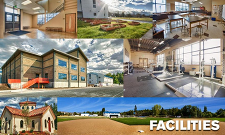 圣瑪麗校園占地24英畝、建有八跑道的四季田徑場、占地五英畝的運動場、健身房和多座教學(xué)樓等。校園里流淌著拉爾森的溪水、因此研究自然棲息地的生物課程可以在戶外進行教授。2012年、圣瑪麗建成了Naumes美術(shù)和體育中心、其中有一個全功能體育館、兩層健身中心、更衣室、兩間藝術(shù)教室、兩間音樂教室。也新建了圣瑪麗教堂也、其建筑特色就是使用了南俄勒岡任何地方都不曾用到的彩色玻璃窗。
