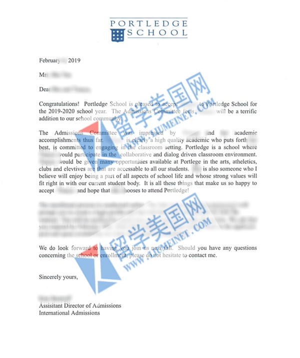波特里奇學(xué)校(Portledge School)錄取offer展示:
