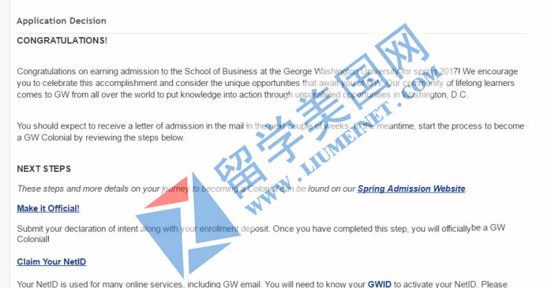 留美網(wǎng)W同學(xué)被喬治華盛頓大學(xué)George Washington University錄取offer展示