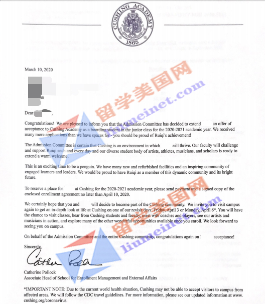 Cushing每年都會考察該校很多次,學(xué)校的硬件設(shè)施一流。這所學(xué)校給我印象最深的就是視覺藝術(shù)一流,學(xué)校的伙食還是不錯的。近幾年剛換的校長,學(xué)校的管理有一些變化。