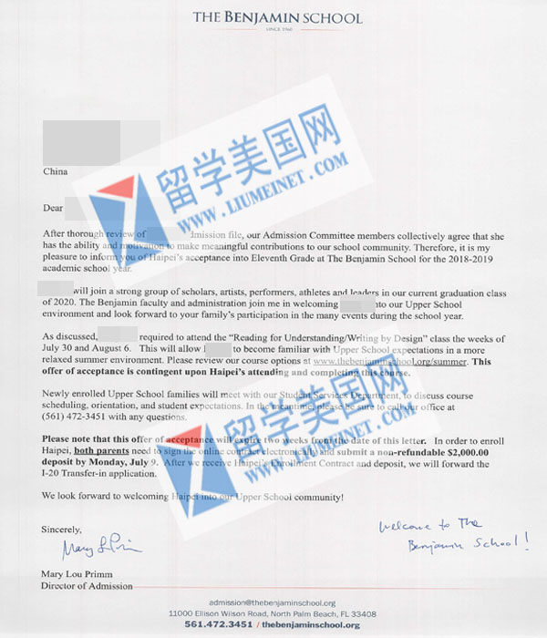 本杰明學(xué)院 The Benjamin School 學(xué)生錄取案例