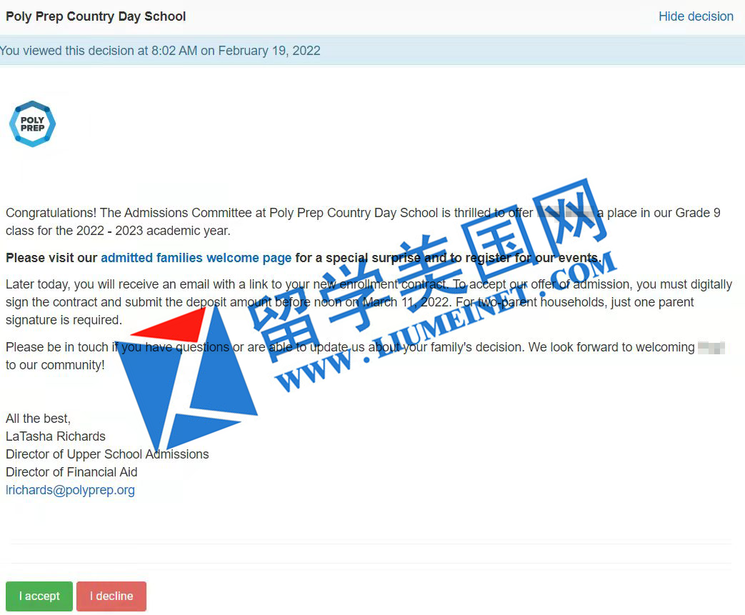 錄取捷報(bào) | 恭喜留美網(wǎng)L同學(xué)斬獲頂尖美高波利預(yù)科走讀學(xué)校Poly Prep Country Day School的錄取~