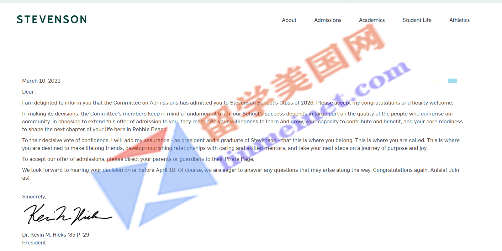 留美網(wǎng)再傳錄取捷報!恭喜留美網(wǎng)C同學獲得寄宿TOP前50的史蒂文森中學Stevenson School錄??!