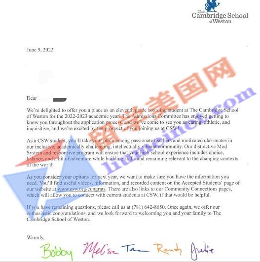 錄取學(xué)校:威斯頓劍橋中學(xué)The Cambridge School of Weston