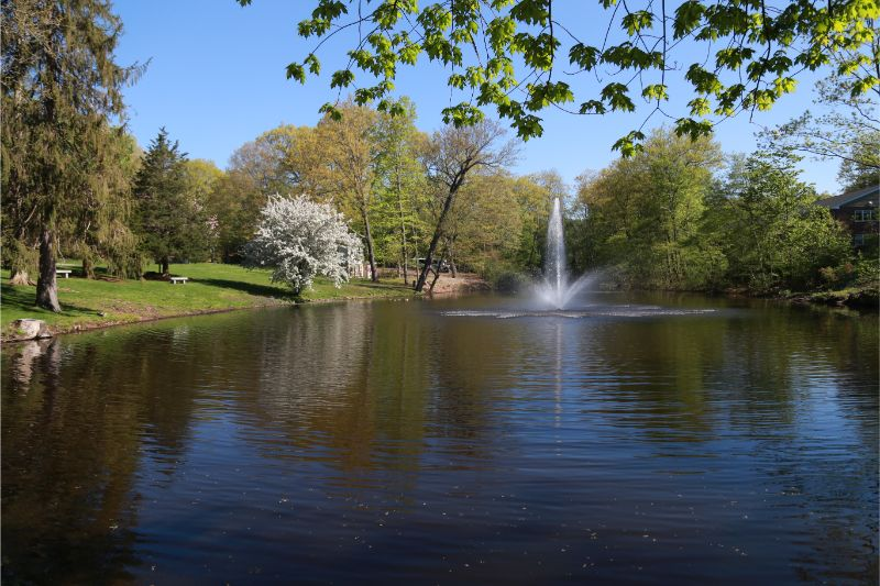 校區(qū)中有11幢主要建筑樓,圍繞著一個池塘,池塘邊群樹環(huán)繞,草場綿延,還有大片運動場地。學(xué)校歷史悠久,環(huán)境優(yōu)美,設(shè)備完善,為學(xué)生提供了一個良好、純樸的學(xué)習(xí)環(huán)境。