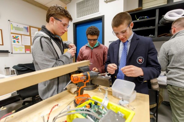作為一所STEM很強(qiáng)的中學(xué),該校在科學(xué)、工程乃至商業(yè)學(xué)科的學(xué)習(xí)中始終強(qiáng)調(diào)學(xué)生應(yīng)學(xué)習(xí)創(chuàng)新,設(shè)計和應(yīng)用等解決問題的能力,為此也專門成立了工程創(chuàng)新實驗室,給孩子們提供了一個動手實踐的場所。孩子們可以在這里完成機(jī)器人開發(fā)、水系統(tǒng)設(shè)計等各種有趣的項目。