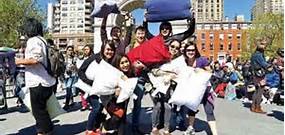 紐約舉行枕頭大戰(zhàn),留學生“武裝”上陣釋放壓力