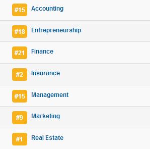 本科最佳商學(xué)院18:,下面是具體分支的排名: