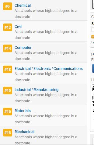 下面是工學(xué)院的具體專業(yè)排名,核工程全美第3,化學(xué)工程全美第6.