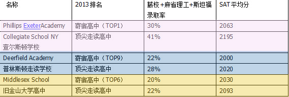 在Prepreveiw排出的2013年美國(guó)最好的私立中學(xué)排名中,NO.1的是紐約的三一學(xué)校,常春藤+麻省理工+斯坦福錄取率高達(dá)42%;安多佛菲利普斯學(xué)院排在第七位,常春藤+麻省理工+斯坦福錄取率是32%,Phillips Exeter Academy 藤校錄取率在30%。