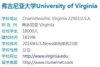 弗吉尼亞大學(xué)(簡(jiǎn)稱(chēng)UVA)成立于1819年,創(chuàng)辦人是美國(guó)第三任總統(tǒng)杰弗遜,是全美排名第二的公立大學(xué),僅次于加州柏克萊大學(xué)。