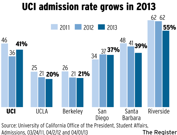 雖然2014年UCI錄取統(tǒng)計(jì)還沒(méi)有出來(lái),但是可以告訴所有的學(xué)生、家長(zhǎng)、留學(xué)機(jī)構(gòu)由于UCI今年收到84,000名學(xué)生申請(qǐng),UCI直接錄取標(biāo)準(zhǔn)已經(jīng)大大提高了。