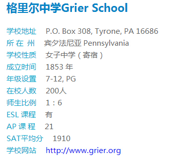 格里爾中學(xué)Grier School 學(xué)校簡(jiǎn)介: