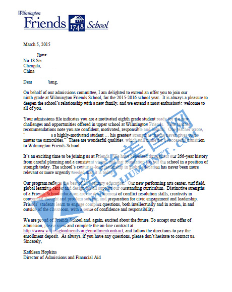 恭喜JRL獲東部頂尖威明頓友好高中錄取!威明頓友好高中全美最佳的國際教育高中之一,迄今有將近300年的歷史,是全美最古老的11所私立高中之一!也是蘋果公司全美資助的個位數(shù)學校之一!