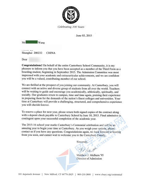 恭喜王同學(xué)獲美國(guó)頂尖寄宿高中坎特伯雷中學(xué)錄?。?/strong>
