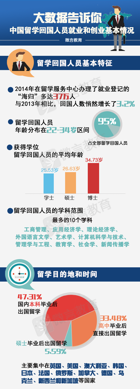 數(shù)據(jù)顯示,2014年在留學(xué)服務(wù)中心辦理了就業(yè)登記的“海歸”多達37萬人,與2013年相比,回國人數(shù)悄然增長了3.2%。