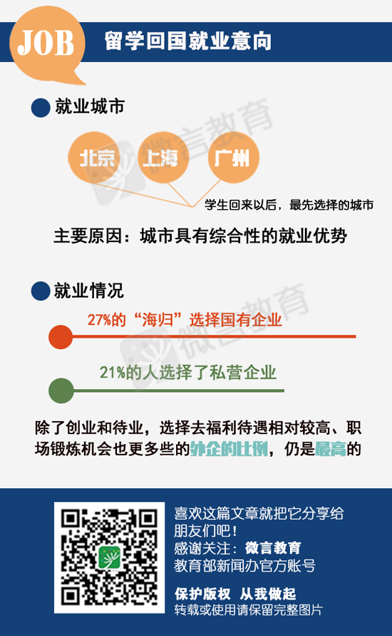 這些學(xué)生回來以后,他們最先選擇的城市是北京、上海和廣州,原因主要是這些城市具有綜合性的就業(yè)優(yōu)勢;其次是選擇一些二線城市,包括杭州、南京等。