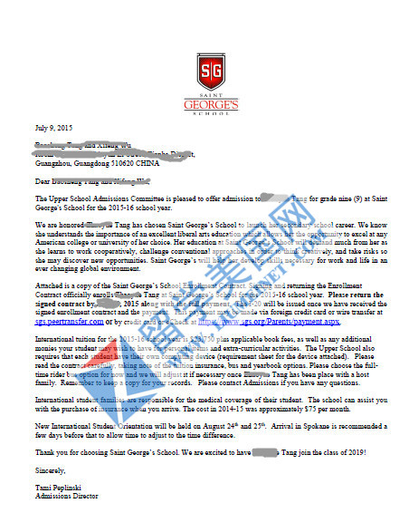 恭喜tang同學獲美國圣喬治中學錄??!
