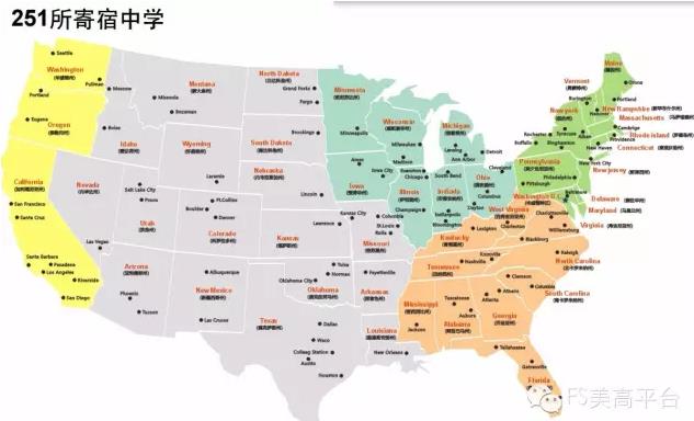 下圖展示了全美251所寄宿中學(xué)的分布狀況。