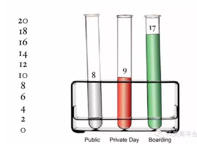 在每周寫作業(yè)的時間上,寄宿學(xué)校的學(xué)生平均要花17個小時之多,是公立學(xué)校8小時的2倍還多。