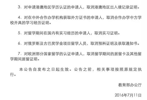 7.對歐洲部分國家留學(xué)的認證申請人,取消留學(xué)期間的居留卡及其他留學(xué)期間居留證明。