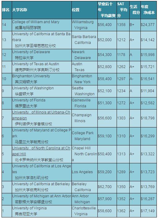 下面我們就先去看看美國(guó)14所最好的公立大學(xué):
