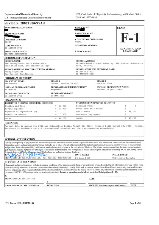 恭喜孫同學(xué)被賓州州立大學(xué)錄取