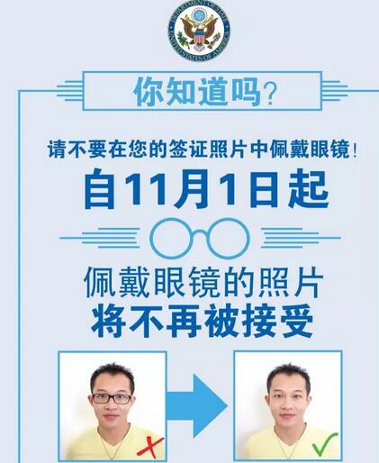 申請赴美簽證,還佩戴眼鏡嗎?那么,請知曉從11月1日起,美國駐華大使館將不再接受簽證申請中申請人佩戴眼鏡的照片。
