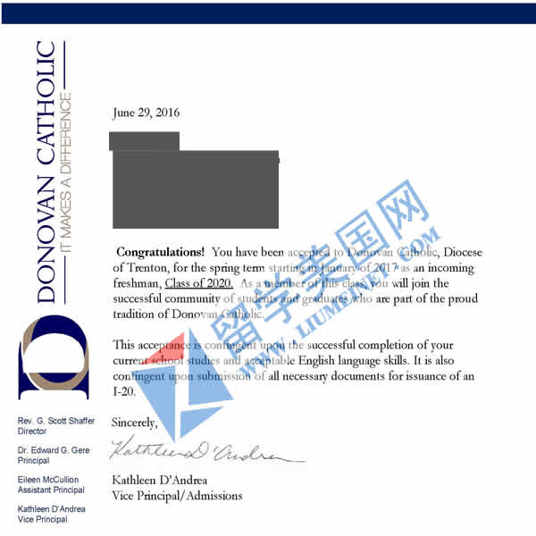 恭喜留美網(wǎng)ZZQ同學(xué)獲得Donovan Catholic High School 多諾萬(wàn)天主教高中OFFER