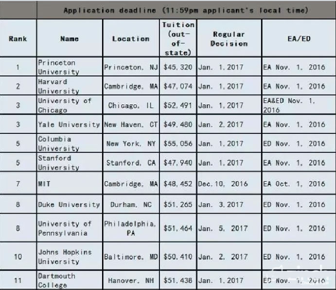 2017美國(guó)大學(xué)ED/EA/REA/RD申請(qǐng)截止時(shí)間