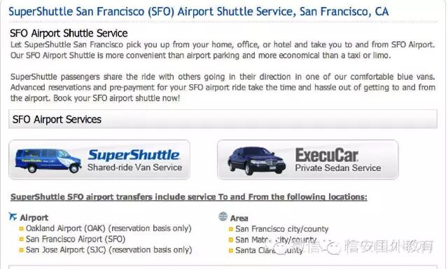 這個(gè)Shuttle同學(xué)們可以提前在網(wǎng)上預(yù)定,看看自己學(xué)校目的地是否在服務(wù)范圍,車(chē)一般都是送到門(mén)口,價(jià)格比的士便宜很多,因?yàn)槭呛推渌艘黄鹌窜?chē)。