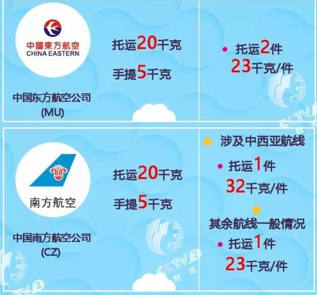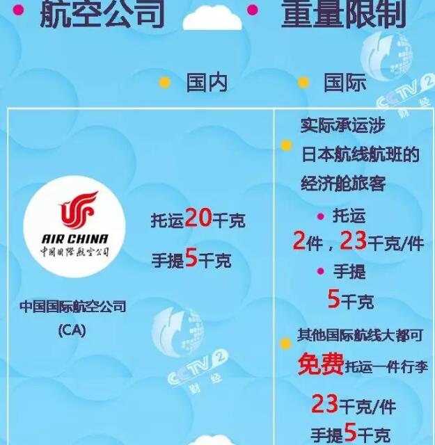 為了避免超重,出發(fā)之前了解航空公司對托運行李和隨身攜帶行李的標準很重要。各大航空公司免費托運行李的標準是怎樣的?以經(jīng)濟艙為例,一般標準如下: