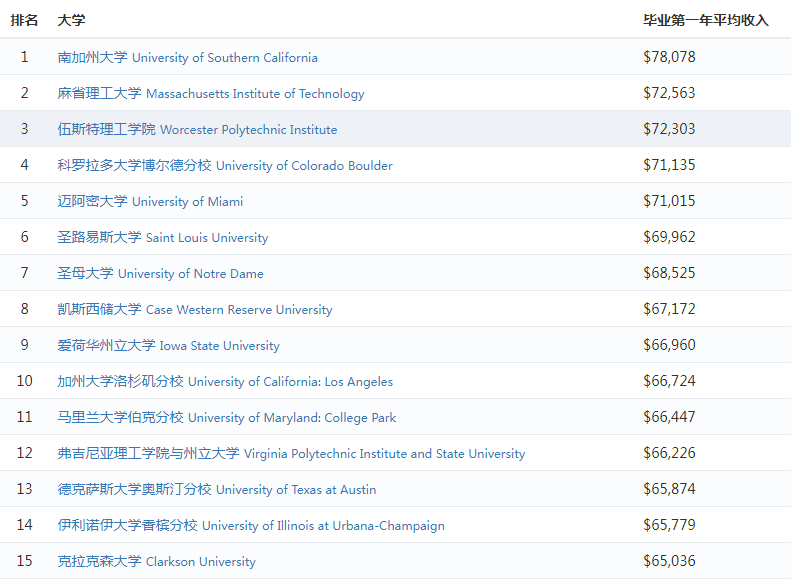畢業(yè)生薪資待遇水平有時(shí)候在一定程度上能夠反映出社會(huì)對(duì)學(xué)校的認(rèn)可程度,從FS上發(fā)布的薪資數(shù)據(jù)來看,畢業(yè)生第一年平均收入排名TOP15的頂尖名校如下: