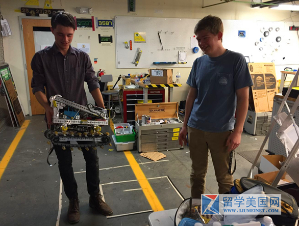 石老師拜訪的第二天學(xué)校機(jī)器人俱樂部的3個(gè)隊(duì)將去格爾伯勒參加本州比賽(照片上的兩個(gè)男孩是機(jī)器人團(tuán)隊(duì)成員),然后再去圣路易斯大學(xué)參加世界機(jī)器人大賽。