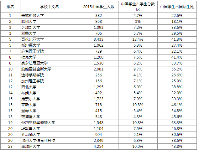 中國學(xué)生占整體學(xué)生數(shù)量比例高的大學(xué)如下: