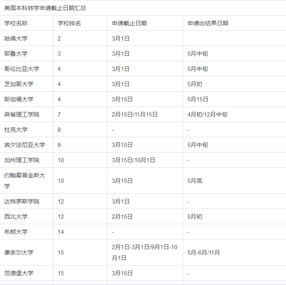 美國大學本科轉(zhuǎn)學申請截止時間匯總