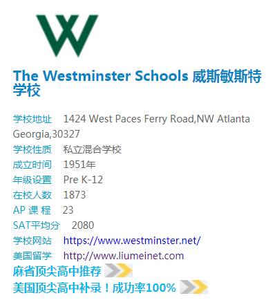威斯敏斯特學(xué)院Westminster School該校是一所私立男女走讀混校,SAT平均分1802;學(xué)校占地34英畝,校園環(huán)境美麗,被譽(yù)為“公園式校園”,設(shè)施完備齊全!學(xué)校辯論隊(duì)實(shí)力非常雄厚,學(xué)校是全國(guó)演講和辯論聯(lián)盟成員,有很多辯論比賽機(jī)會(huì),近14年來(lái),學(xué)校辯論隊(duì)獲得過(guò)308次獎(jiǎng)勵(lì)!該校74%的學(xué)生至少參加了一項(xiàng)運(yùn)動(dòng)。學(xué)校運(yùn)動(dòng)隊(duì)成績(jī)突出,在足球、越野、游泳、網(wǎng)球項(xiàng)目上都曾獲得過(guò)州冠軍。升學(xué)率100%,升學(xué)走向超棒!2015年50余名畢業(yè)生共獲得168萬(wàn)美元獎(jiǎng)學(xué)金。