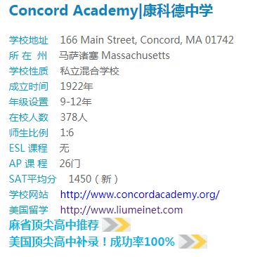 康科德學(xué)院Concord Academy康科德中學(xué)位于馬薩諸塞州,成立于1922年。學(xué)校占地39英畝,優(yōu)美校園,設(shè)備完善,離波士頓18英里,距劍橋市約30分鐘,與同列美國(guó)私立寄宿高中“第一梯隊(duì)”的其他學(xué)校相比,康科德學(xué)院最大的特色就是藝術(shù)氛圍濃厚。約翰·肯尼迪的女兒-卡洛琳·肯尼迪就讀于此,學(xué)校是一所頂尖寄宿中學(xué),感興趣的朋友可以馬上咨詢。