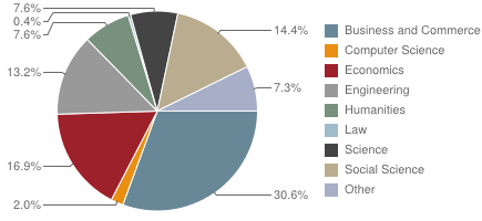 錄取者中各個(gè)專業(yè)所占比率: