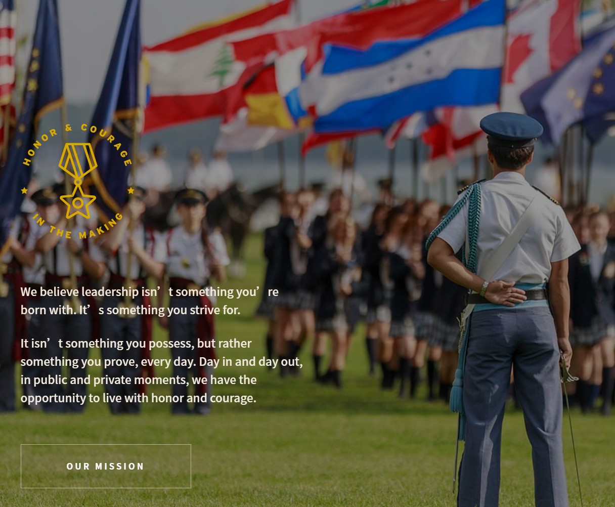 1、領(lǐng)導(dǎo)力培養(yǎng):全球聞名的領(lǐng)導(dǎo)力課程(Leadership Education)貫穿4年,含軍事領(lǐng)導(dǎo)力(CMA)與服務(wù)領(lǐng)導(dǎo)力(CGA),畢業(yè)生100%完成領(lǐng)導(dǎo)力項目。