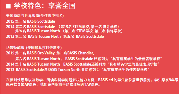 從圖森市開始的這一所獨(dú)立學(xué)校,BASIS.ed現(xiàn)已發(fā)展成了一個(gè)獨(dú)一無二、成績斐然且史無前例的學(xué)校網(wǎng)絡(luò)體系——擁有五所獨(dú)立分校(分別位于布魯克林,曼哈頓,麥克萊恩市以及位于硅谷的兩所),還有一所位于中國深圳的國際學(xué)校,以及18所遍布美國的特許學(xué)校。BASIS.ed的使命是將學(xué)生的學(xué)習(xí)水平提升到最高的國際水平。