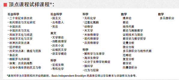 *課程列舉為貝斯院校所開設(shè)的課程。BASIS Independent Brooklyn的具體安排以學(xué)生需求與錄取情況為參考。